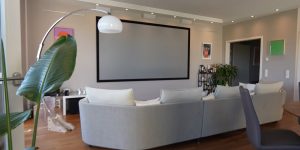 Ein moderner Wohnraum muss die integrierte AV-Technik nicht bei „normaler“ Nutzung preisgeben. Vielmehr zeigt sich die Technik erst auf Knopfdruck. Die Lautsprecher, die auch zum Musikhören oder Multiroom-Betrieb genutzt werden, sind dezent bis unsichtbar im Raum installiert.